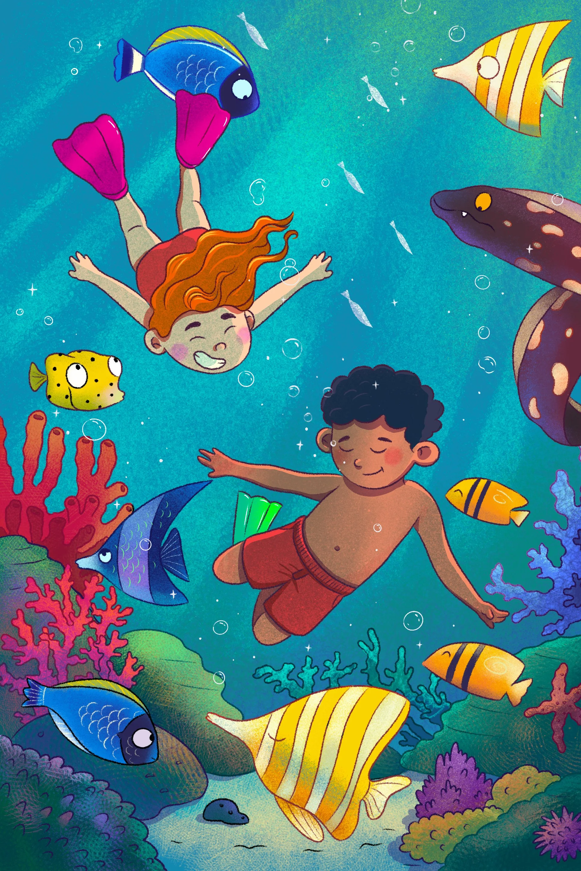 Les illustrations sur les mangroves de l'île Maurice réalisées pour un client visent à inviter aussi bien les adultes que les enfants à explorer les fascinants paysages de racines entrelacées et à découvrir la multitude d'espèces animales et végétales qui y résident. L'objectif ultime est de sensibiliser les gens à l'importance vitale de ces écosystèmes pour notre planète.